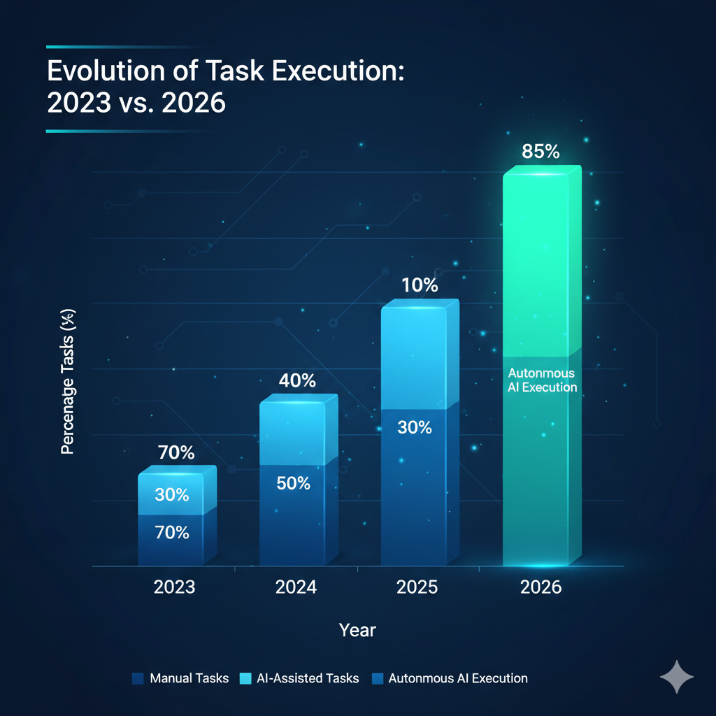 The most significant shift in 2026 is the transition from “Chatbots” to “Intelligent Agents.” Early AI required a human to prompt, verify, and execute. Today, AI agents are autonomous.