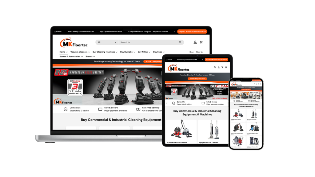 MK Floortec Services Ltd is a UK-based supplier of professional cleaning equipment serving residential, commercial, and industrial markets. With decades of operational experience, the company has built a reputation for delivering reliable products and exceptional service. As online demand grew, MK Floortec recognized the need for a modern digital commerce platform capable of supporting expanding product lines, improving customer experience, and driving long-term growth. The company sought a scalable eCommerce solution that could seamlessly serve both professional buyers and everyday customers while improving operational efficiency and online visibility.