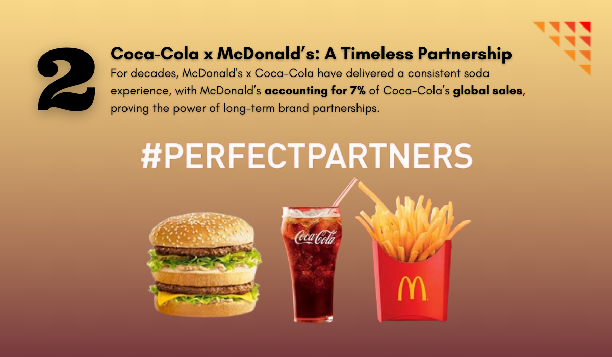 ✅ Impact: McDonald’s drives approximately 7% of Coca-Cola’s global sales, showcasing how sustained partnerships can generate steady revenue and maintain brand loyalty.